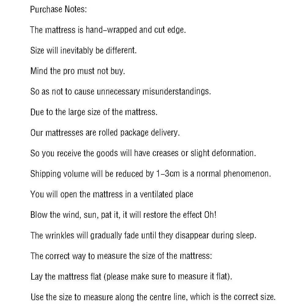 1. Note d’achat: Le matelas est enveloppé à la main et le bord coupé, la taille aura inévitablement des différences, faites attention au pro ne tirez pas pour éviter les malentendus inutiles.